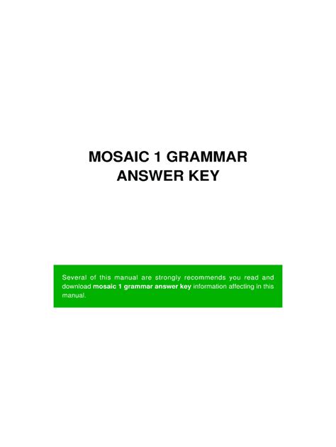Online PDF MOSAIC 1 GRAMMAR ANSWER KEY Kindle Editon Library Genesis